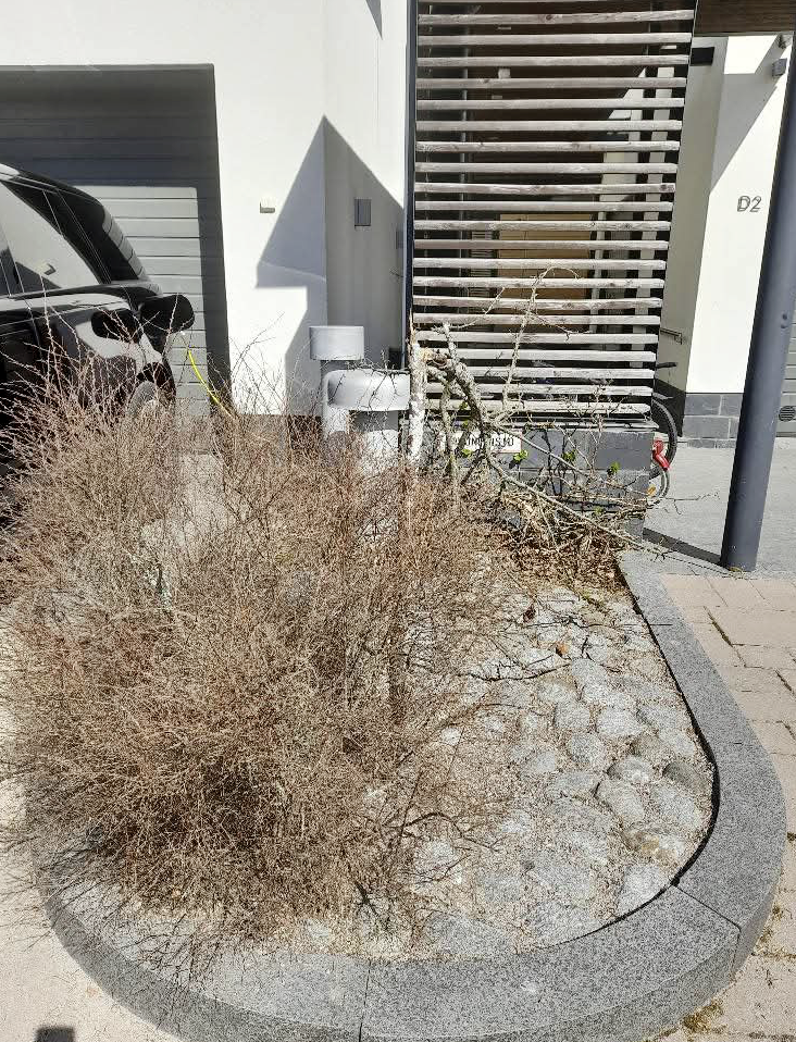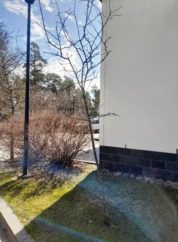 Taloyhtiön pihaan istutetut koristepuut olivat noin 20 vuotta vanhoja ja kasvutila juuristolle oli käynyt puille liian ahtaaksi. Juuristoalueet oli peitetty tiiviisti kivillä, mikä esti puiden hengittävyyttä sekä veden ja ravinteiden kulun maaperään ja aiheutti kitukasvuisuuden. Lisäksi säännöllisiä hoitoleikkauksia oli laiminlyöty, mikä heikensi puiden muotoa ja kukintaa. Tämä kohde on kuulunut v. 2024 kausihoitotyökohteisiini, joten koristepuiden jatko hoitaminen on luonnollisestikkin nykyään osa hoitosopimustani tässä taloyhtiössä.