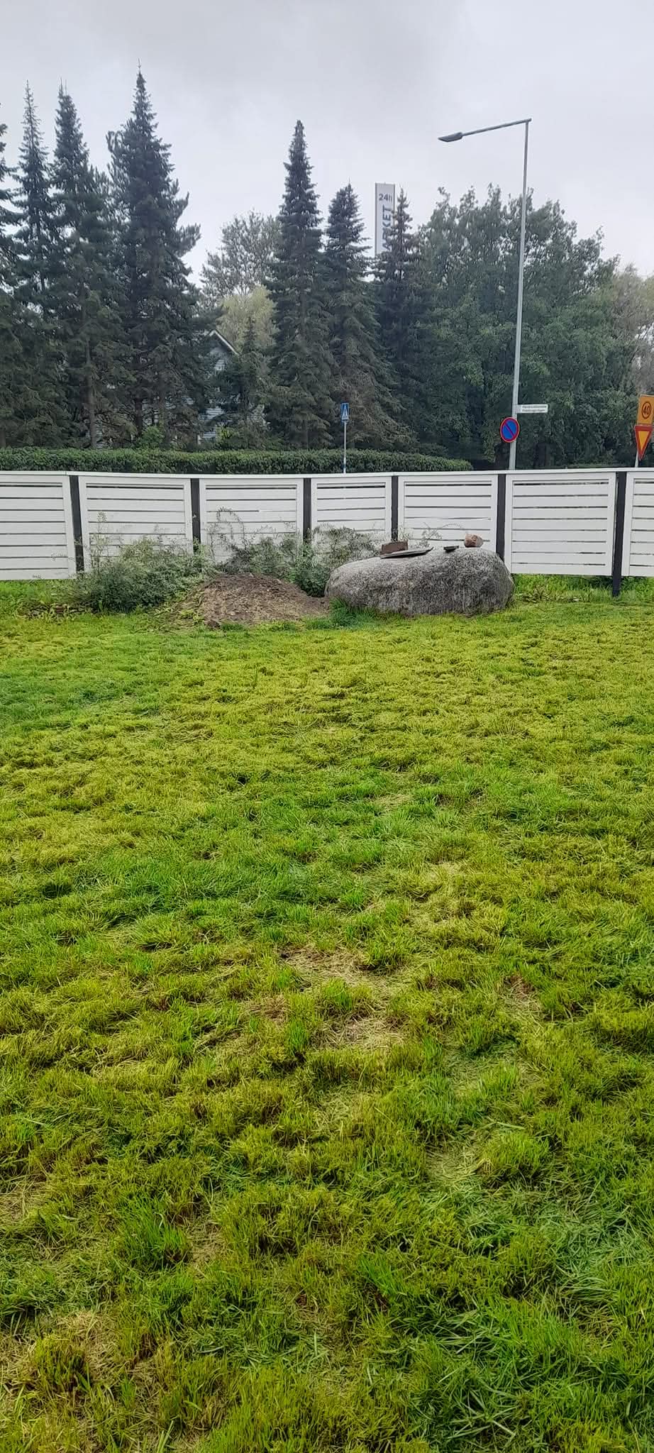 Koko pihan alueelle tuotiin myös uutta multaa ja kylvettiin uusi nurmikko. Piha sai uuden ilmeen ja muutaman vuoden päästä myös toivottua suojaa saadaan pihaan kasvien kasvaessa omiin mittoihinsa!