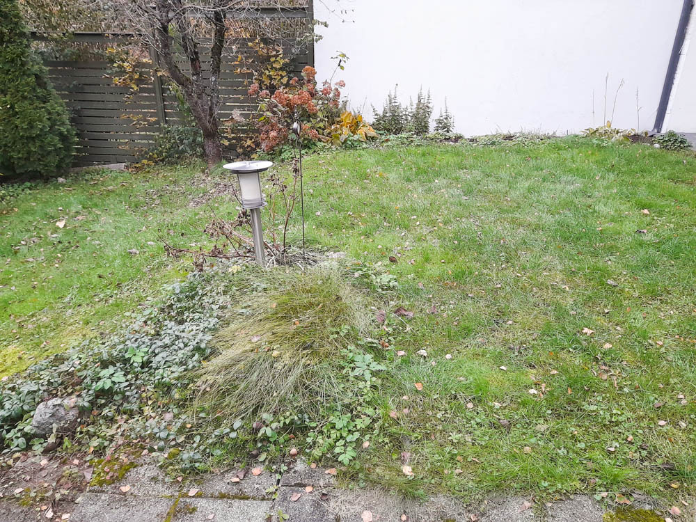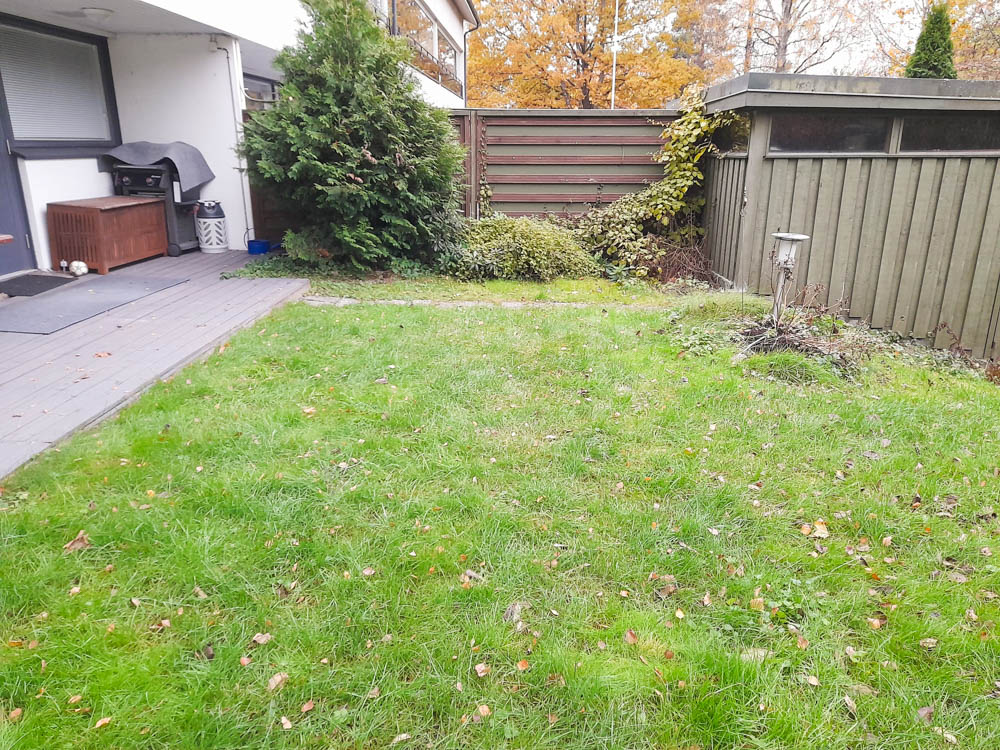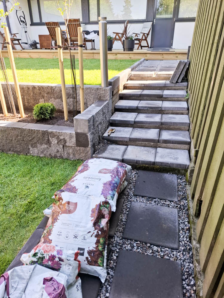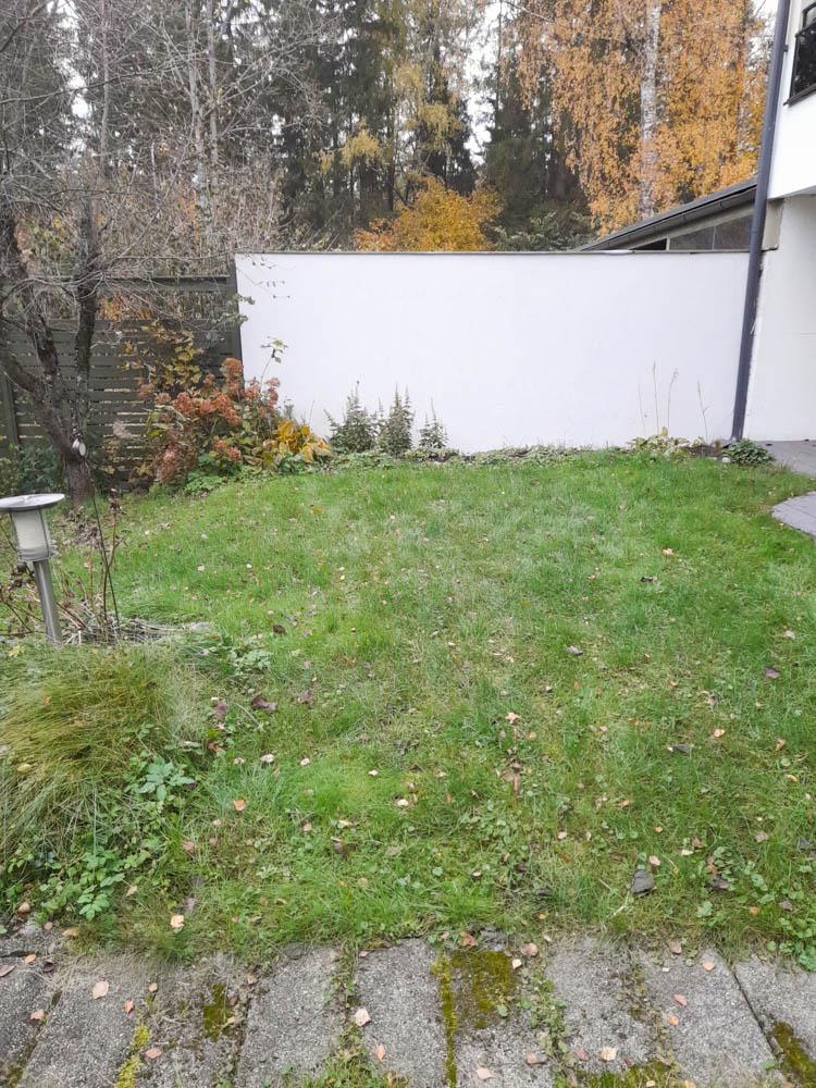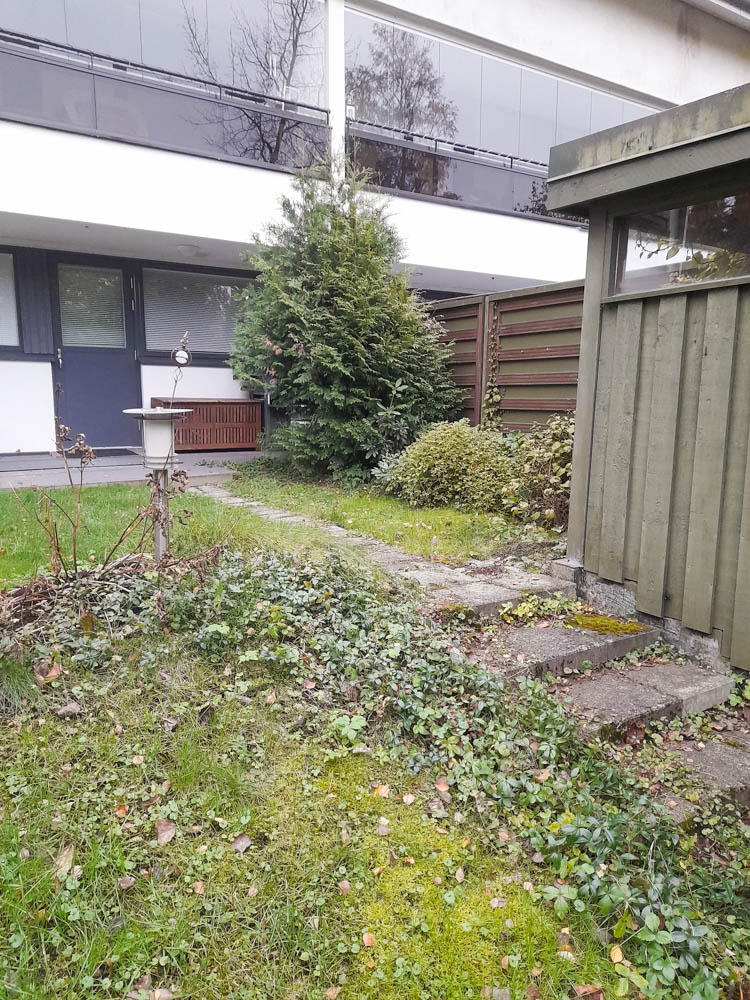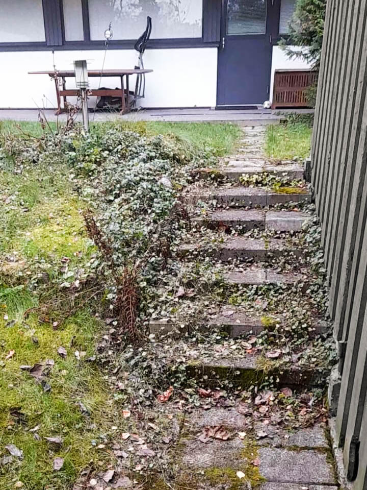 Pihan lähtötilanne – kasvit olivat päässeet leviämään pihaportaisiin
